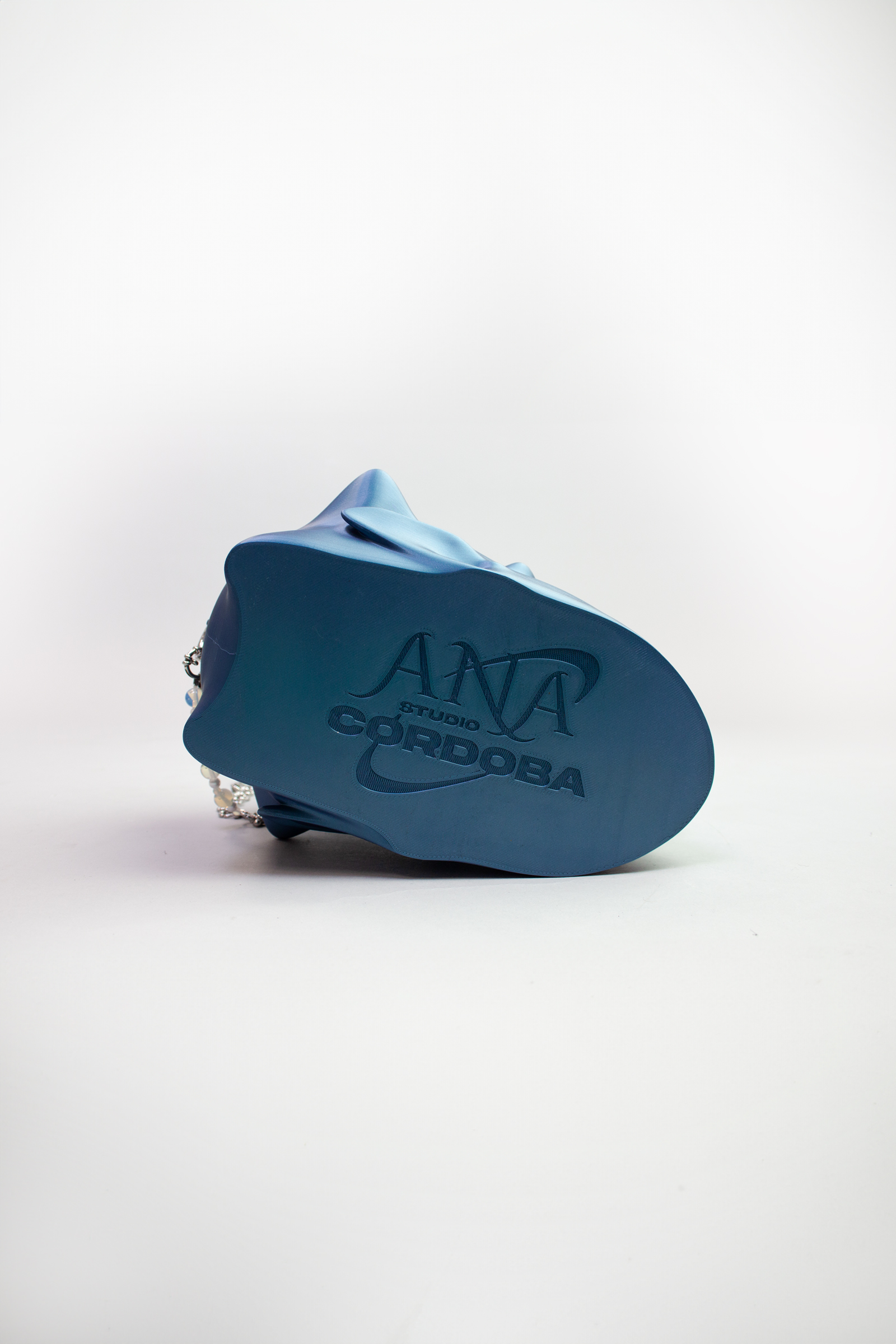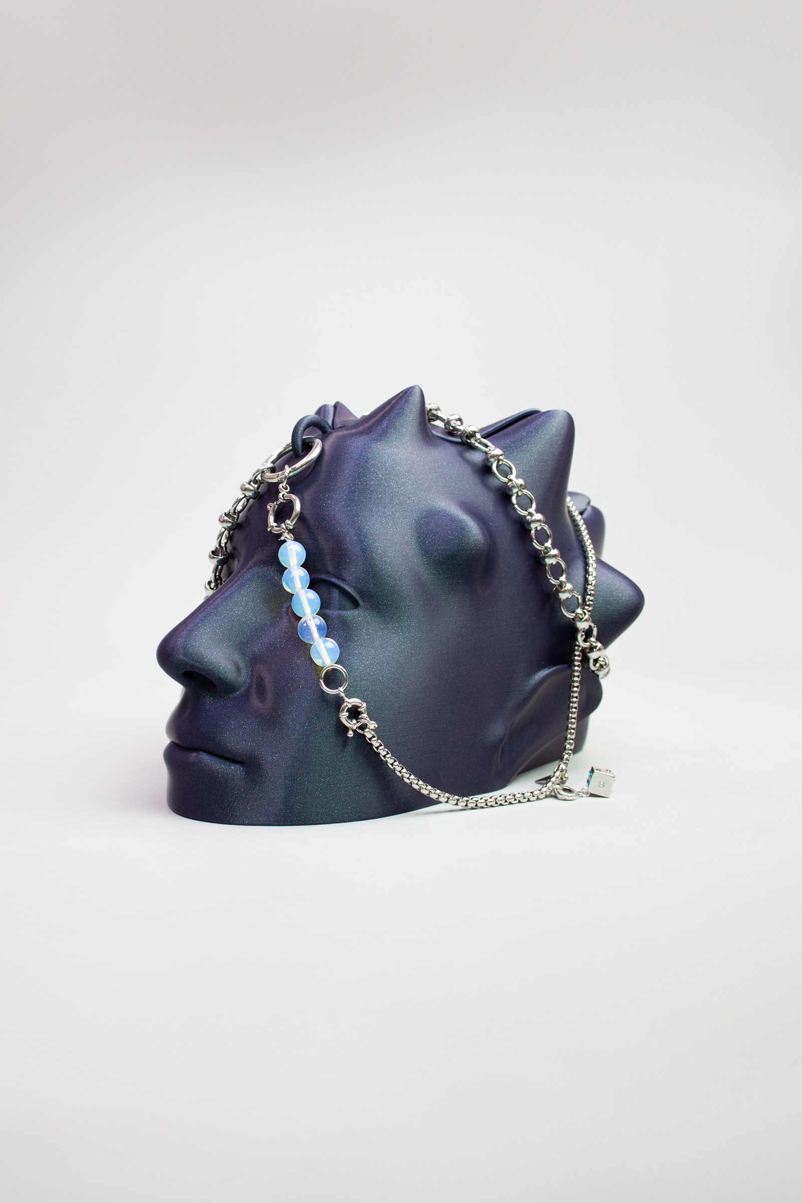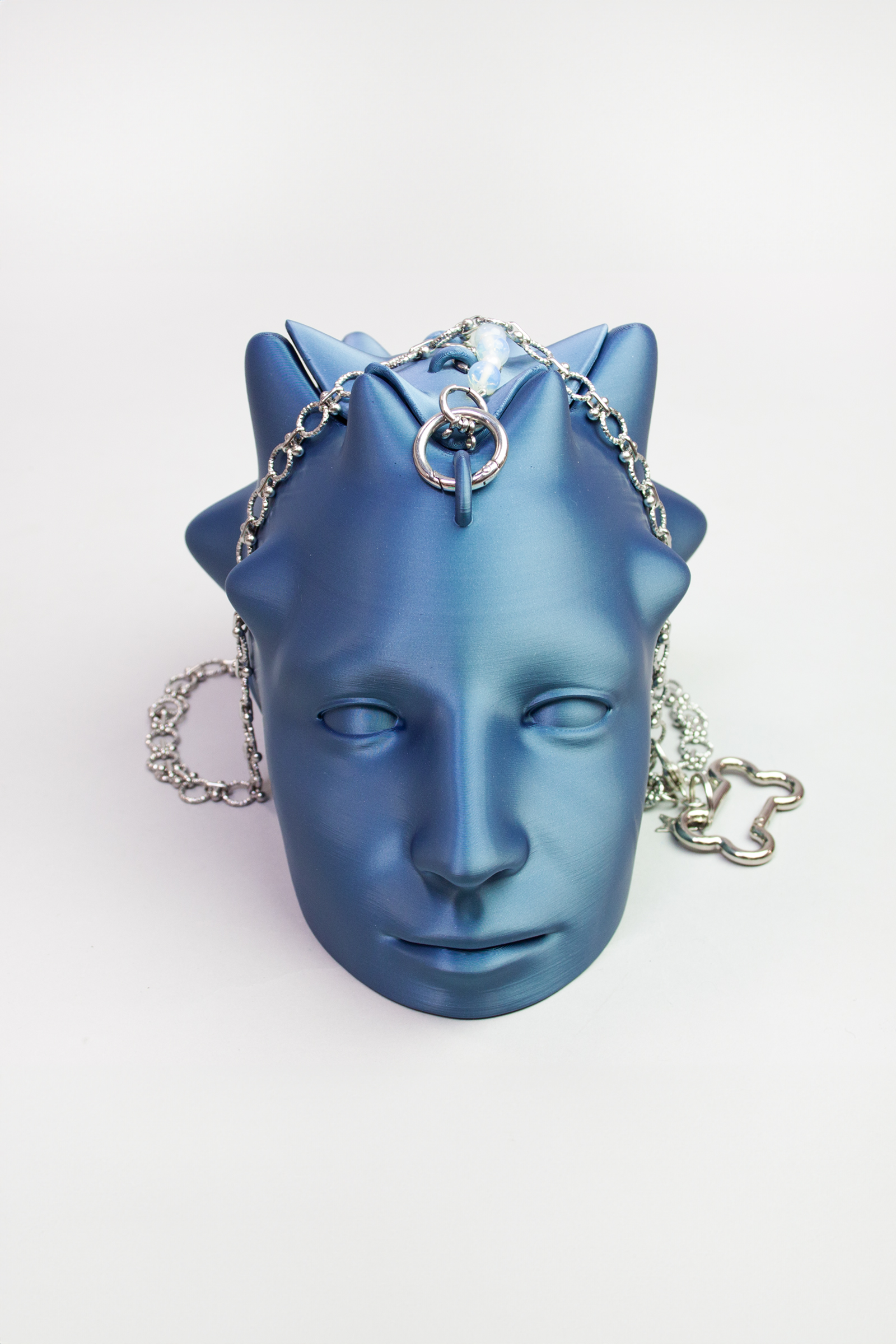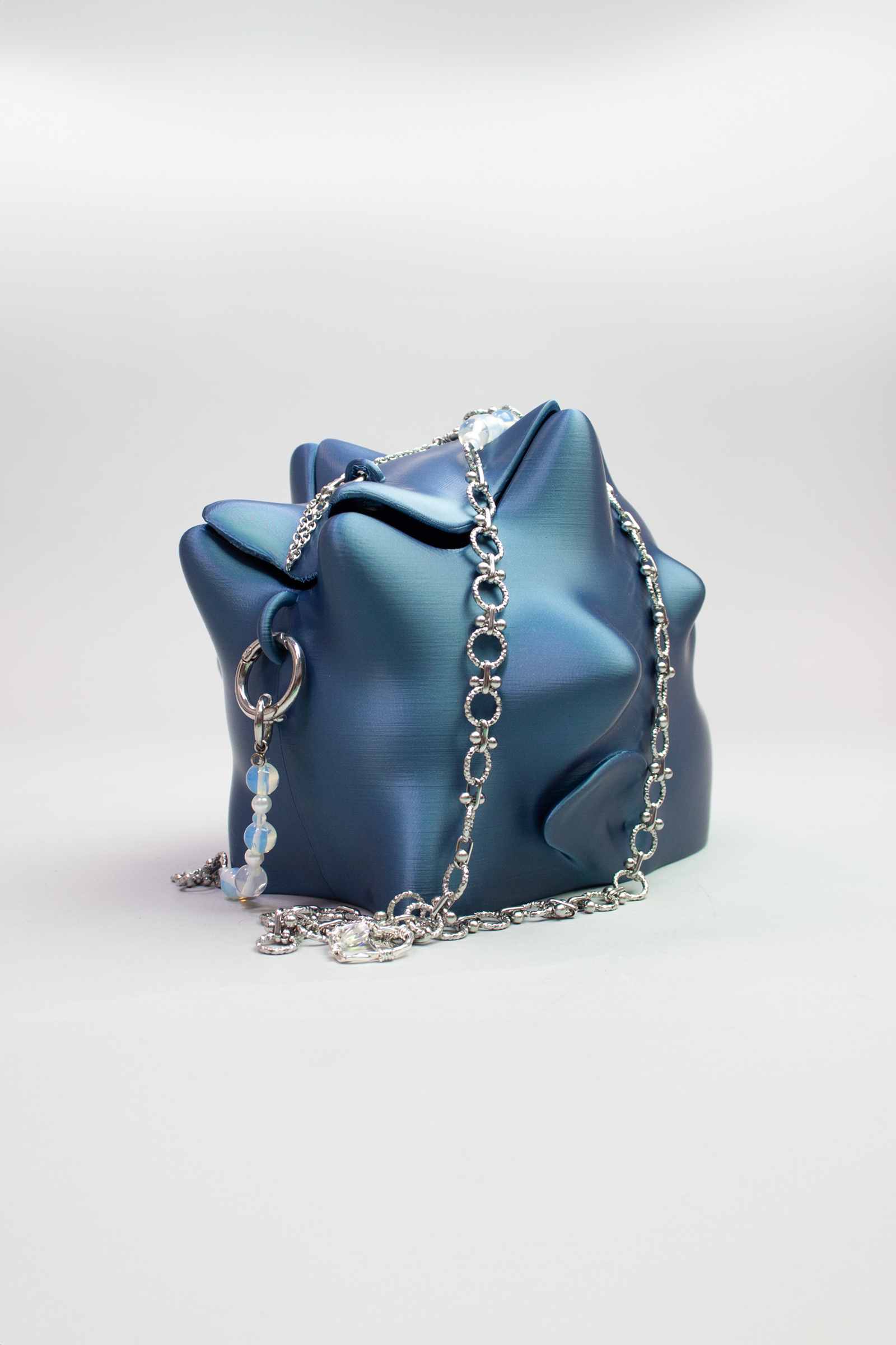 The Metal Blue Bag is fully 3D-printed and has been designed and crafted in our small London studio. The bag challenges the fight for genuine originality in a world where everything can be copied. Every bag aims to embrace the intricate interplay between humanity and technology in the modern age.